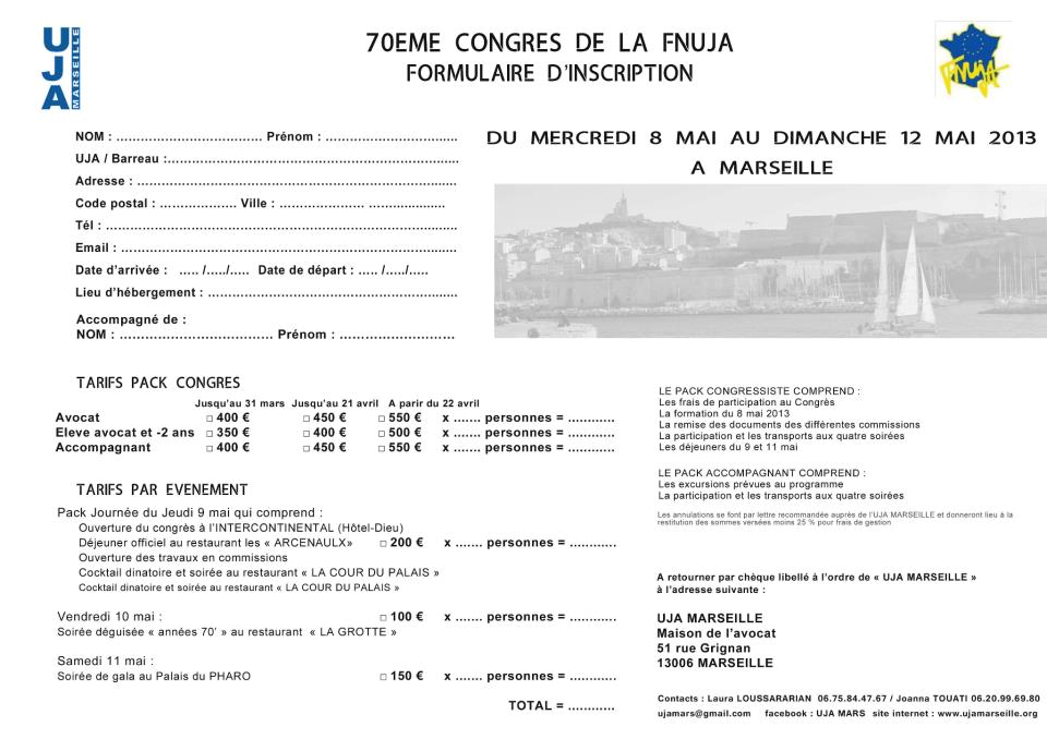 Alors, pour que personne ne manque à l'appel lors du Congrès qui se tiendra dans la Citée phocéenne du 8 au 12 Mai prochain, vous trouverez en pièce jointe, le bulletin d'inscription tant attendu !
