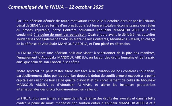 Communiqué de l’Association des Jeunes Magistrats & de la Fédération Nationale des Unions de Jeunes Avocats du 02 octobre 2025