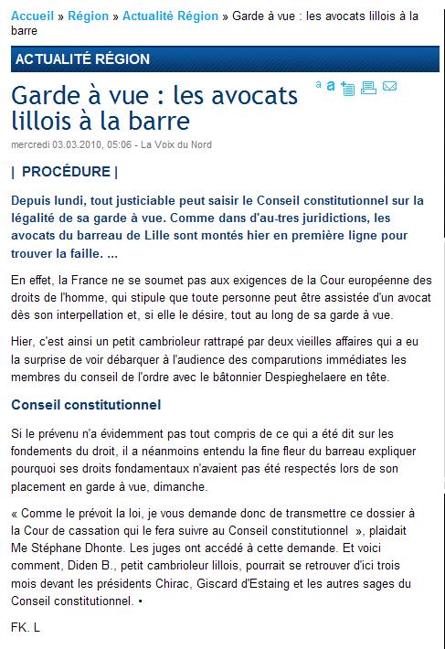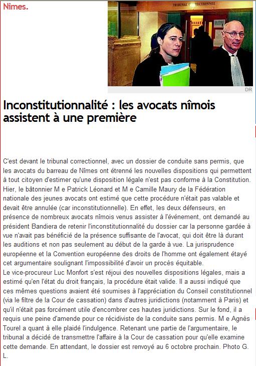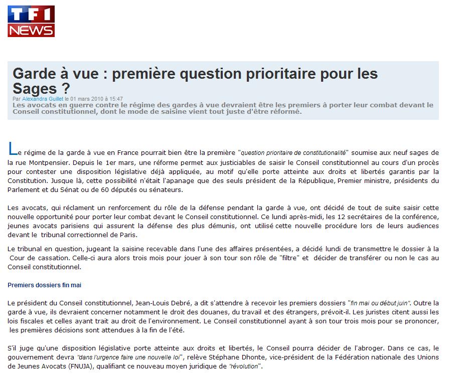 LA QPC CONTRE LA GARDE A VUE : Les Actions de la FNUJA relayées par la PresseJeudi 4 Mars 2010