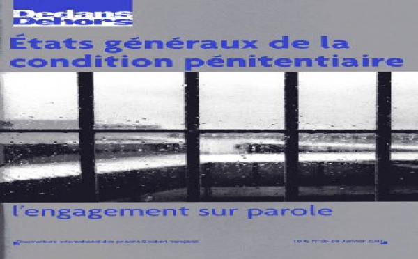 Entièrement consacré aux Etats généraux de la condition pénitentiaire, le nouveau numéro de Dedans dehors (numéro double 58-59) retrace l'ensemble de la démarche, selon les trois actes qui l'ont structurée : la consultation (page 5), le manifeste (page 41), les engagements (page 65). Il a été sous-titré "l'engagement sur...