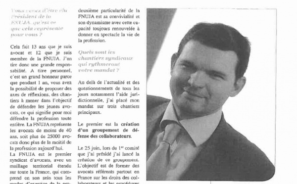 Interview de Stéphane DHONTE, Président de la FNUJA, dans la Gazette du Palais