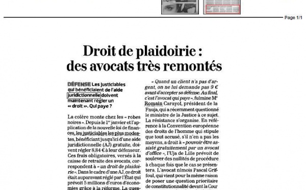 Je rappelle que la vocation de l'UJA est de défendre les avocats et particulièrement les confrères les plus jeunes parce que leurs...