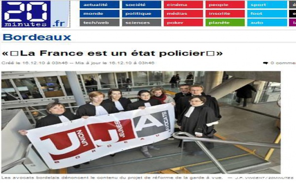 Jeudi 16 décembre 2010 "Les avocats bordelais ont déserté hier les prétoires pour protester contre le contenu du projet de réforme de la garde à vue, adopté hier par la commission des lois de l'Assemblée nationale : «N'importe qui peut se voir privé de sa liberté dans des conditions plus ou moins...