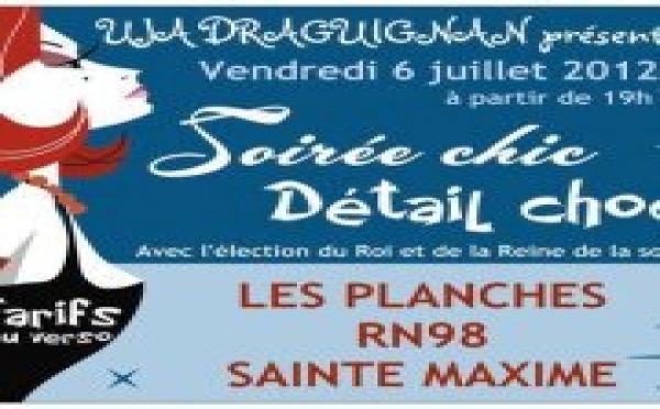 L'UJA de DRAGUIGNAN organise sa soirée d'été : le vendredi 6 juillet 2012 à partir de 19heures aux Planches à Sainte-Maxime! (101 av. Le Croiseur Léger Le Malin, 83120 Sainte-Maxime) Thème : Soirée CHIC DÉTAIL CHOC! ex: costume en haut/maillot en bas robe de soirée/palmes... Soyez inventif pour être élu le roi ou la reine de...