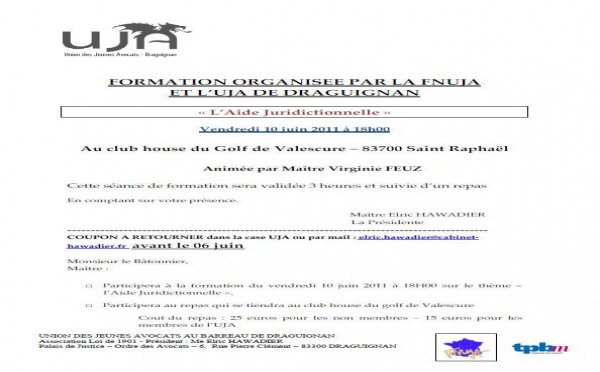 Le Vendredi 17 Juin 2011 à 14 heures, se tiendra à la Maison de l'Avocat (16 Rue Régale) à Nîmes, une formation sur le thème de l'Exécution des Décisions de Justice, animée par Maître Raphaël LEZER, Avocat au Barreau de Nîmes, et Maître Stéphane BLONDEAU, Huissier de Justice à Nîmes.