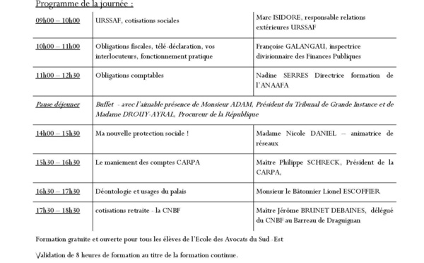 L'UJA de DRAGUIGNAN organise le 12 novembre 2014 une formation intitulée INSTALLATION: LE GRAND SAUT !! Cette formation valide 8 heures de formation continue.