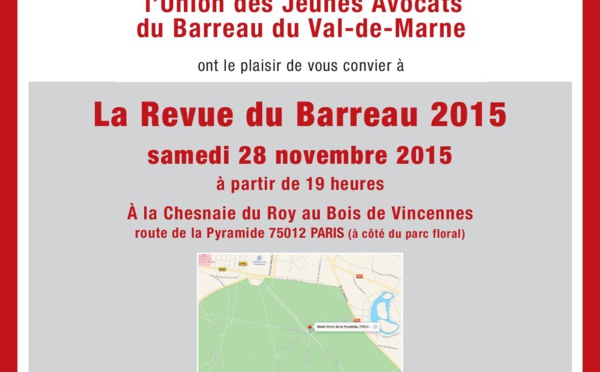 L'UJA du VAL DE MARNE aura le plaisir de vous présenter sa revue le 28 novembre prochain à la Chesnaie du Roy au Bois de Vincennes 75012 PARIS Renseignements et inscriptions: avocats@ordre94.fr