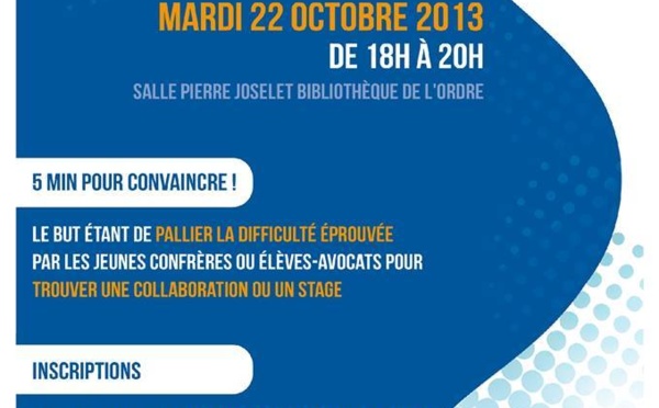Pour pallier à la difficulté rencontrer par les Jeunes Confrères pour trouver une collaboration ou un stage, l'UJA de Nice organises, un Job Dating, le 22 octobre 2013, de 18h à 20h à la Bibliothèque de l'Ordre.