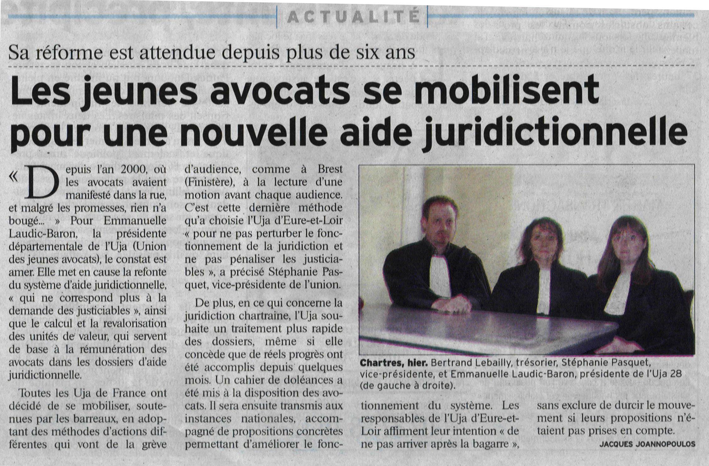 Rappelons également qu'une Commission de travail sur la question de l'aide juridictionnelle a été créée au sein de l'UJA 28 et que tous les Confrères sont appelés à faire très rapidement connaître leurs observations et propositions.
